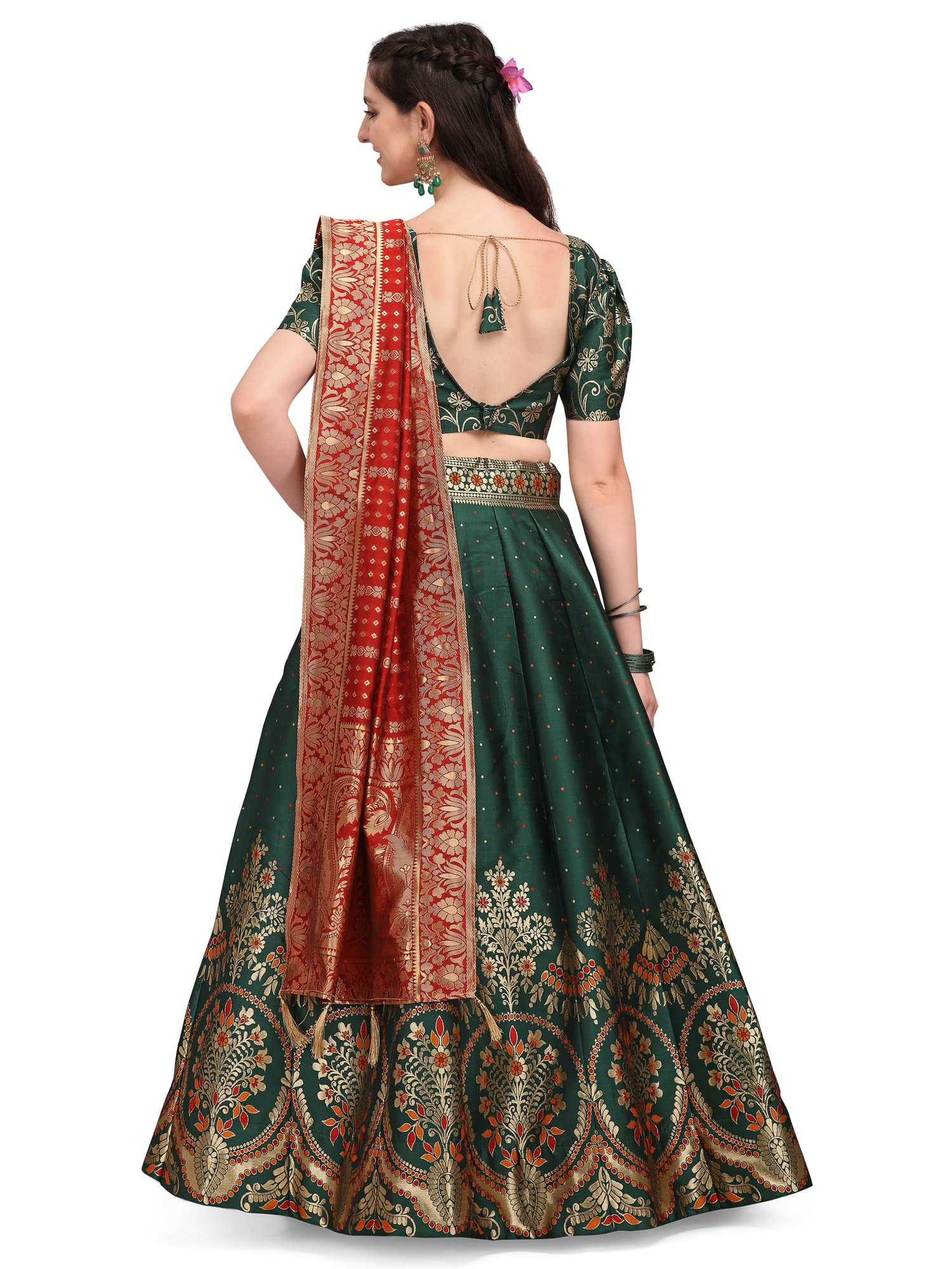 PURVAJA Women's Jacquard Semi-Stitched Lehenga choli