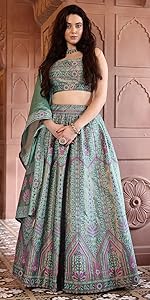 - Product Content: 1 Choli, 1 Lehenga, 1 Dupatta; Wash Care: Dry clean or hand wash in cold water
