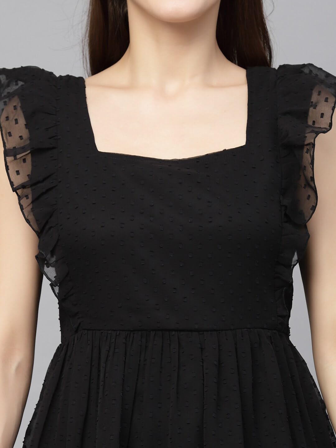 Georgette Jacquard Butti Square Neck Knee Length Western Dresses for Women (Dress2 89) 1