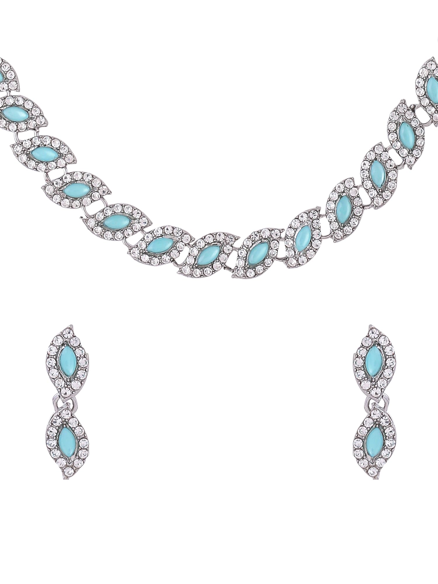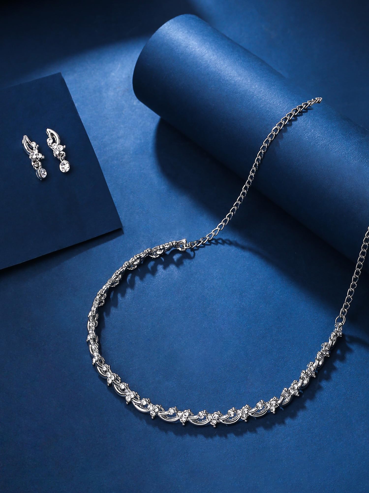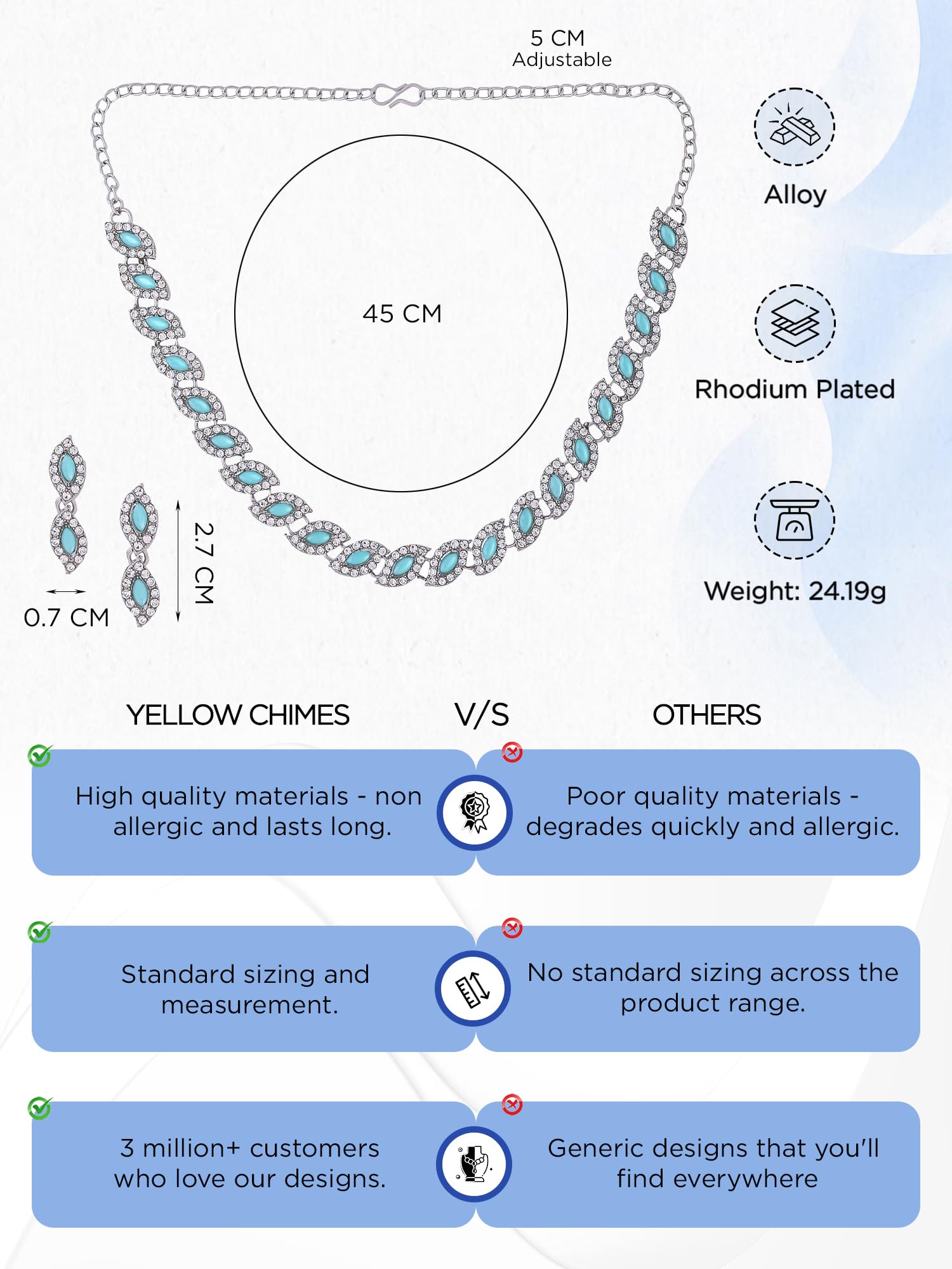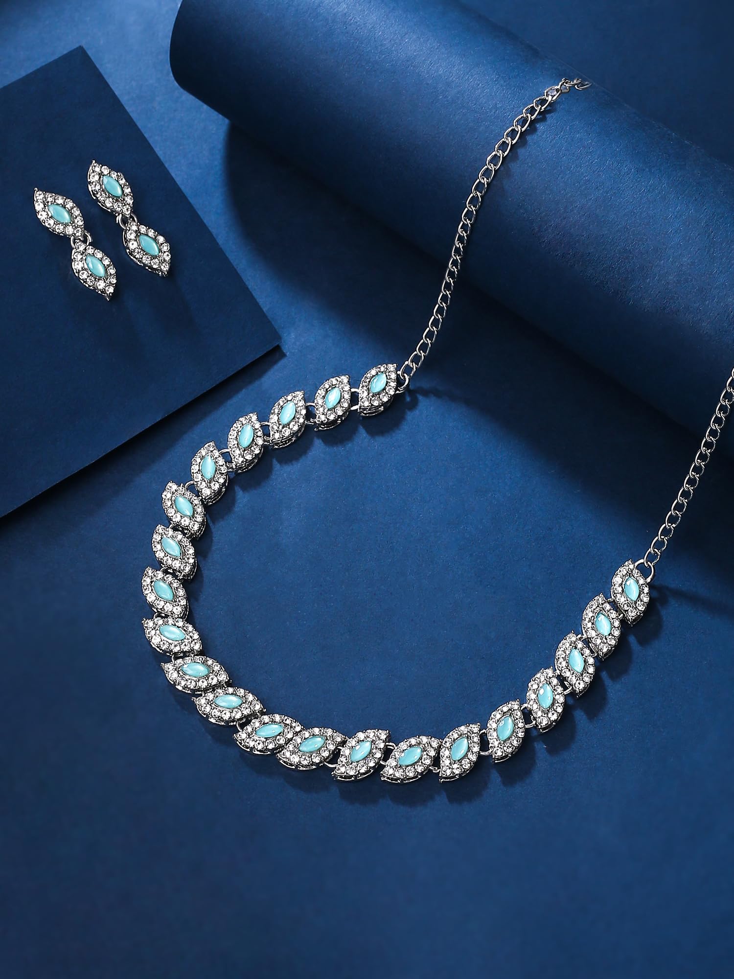 - This silver toned white and blue crystal studded choker necklace set for women comes with a unique design that suits any of your outfit. Our Product is perfect for valentines Anniversary Birthday gift for Women,girlfriend,Wife.