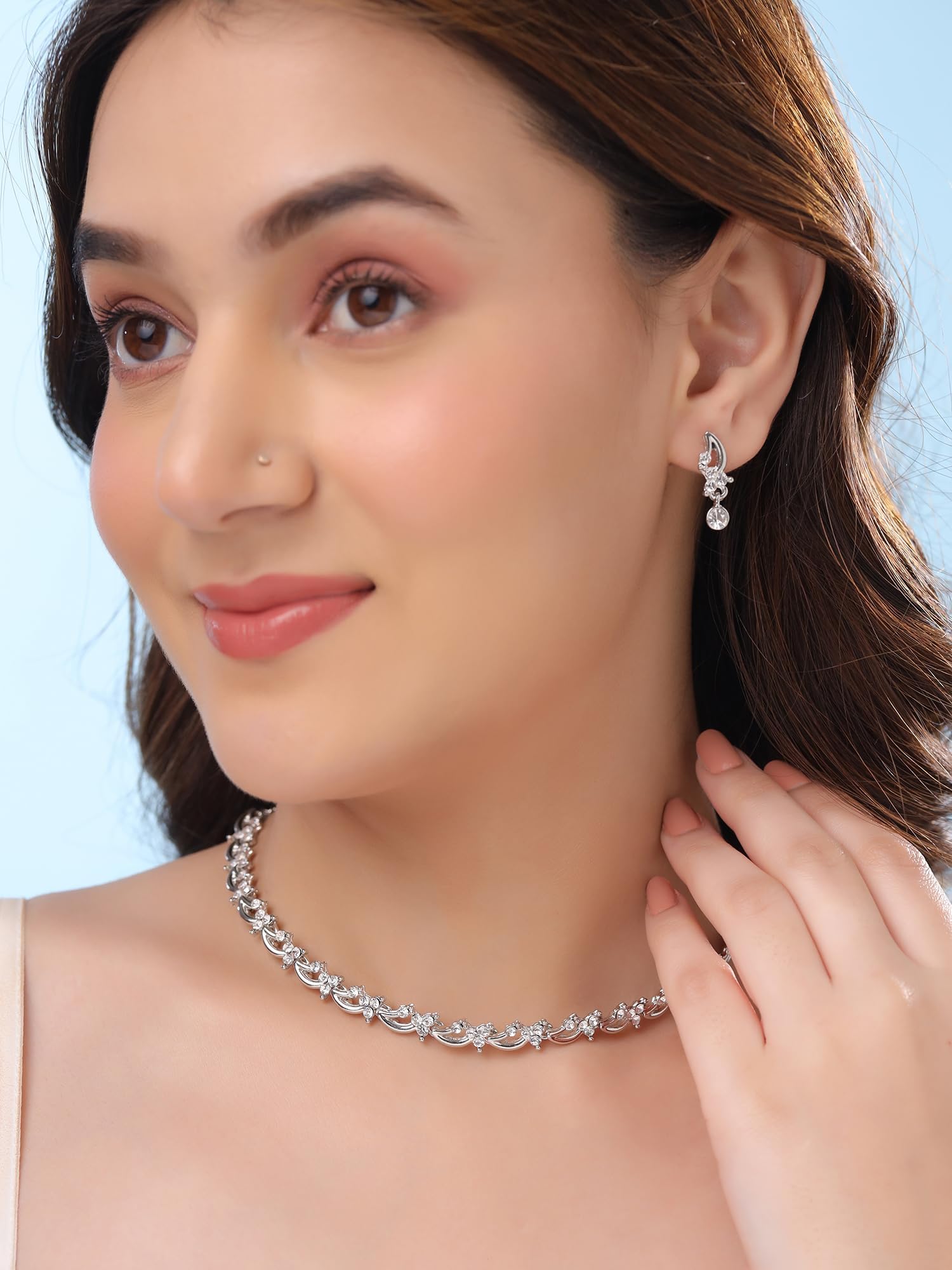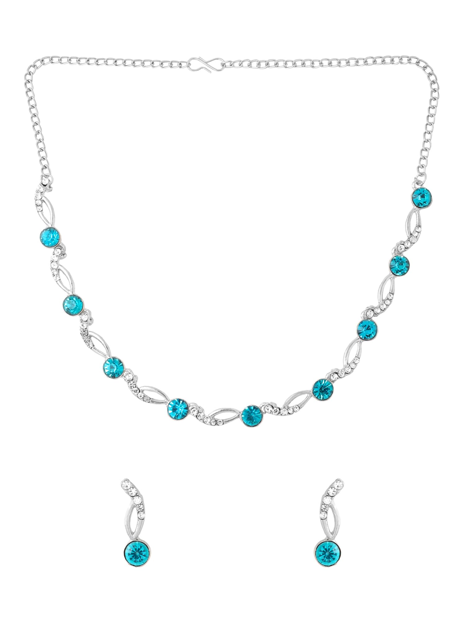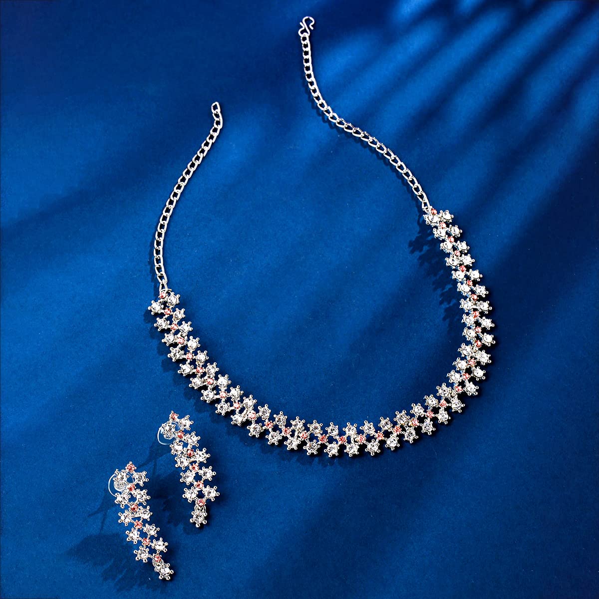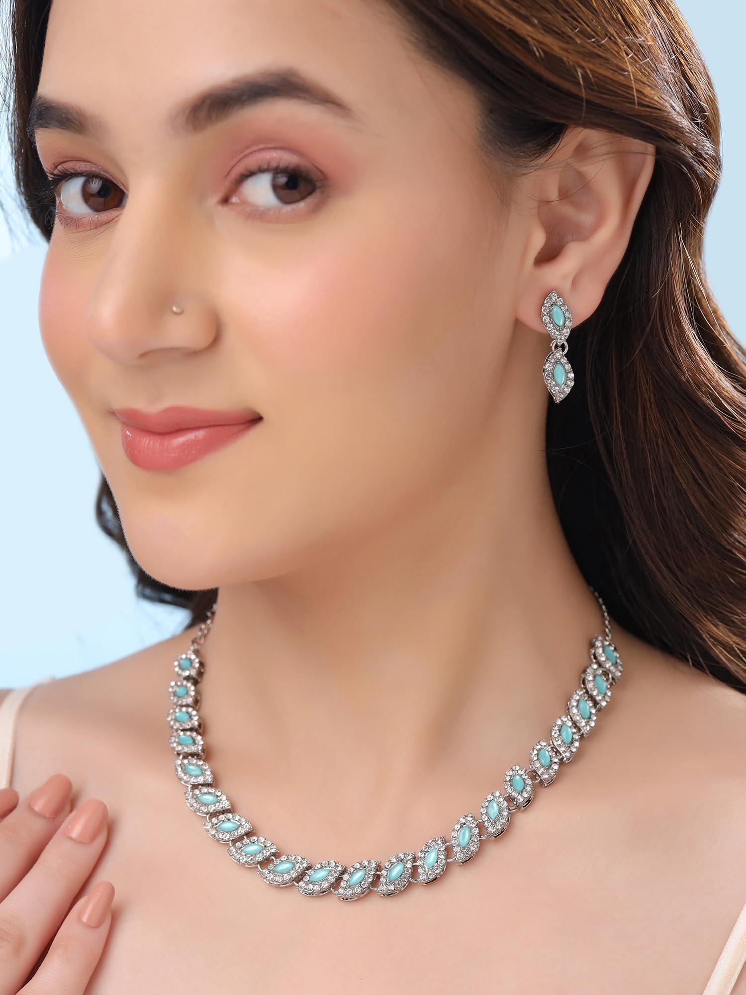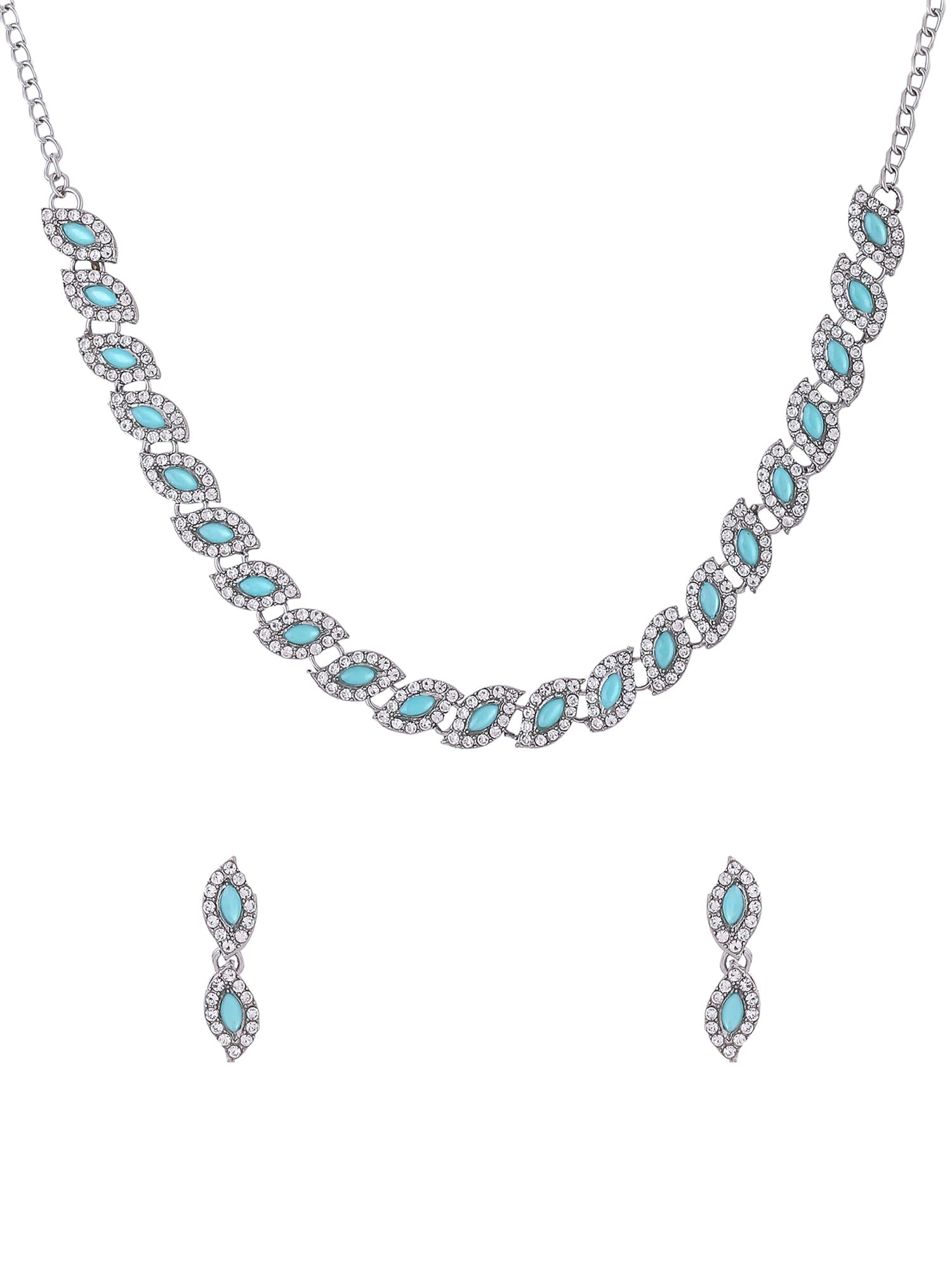 - This silver toned white and blue crystal studded choker necklace set for women comes with a unique design that suits any of your outfit. Our Product is perfect for valentines Anniversary Birthday gift for Women,girlfriend,Wife.